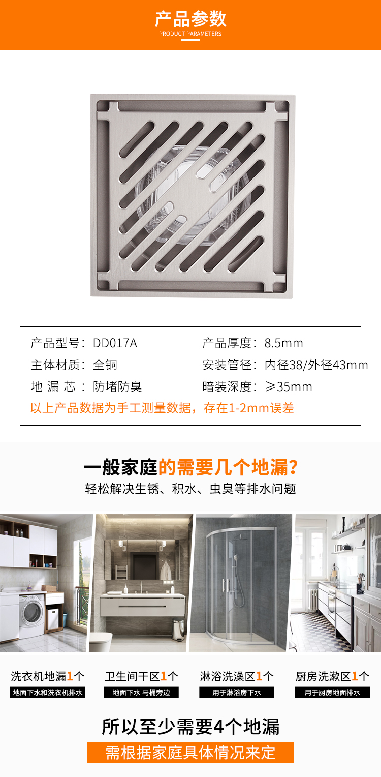 全铜地漏